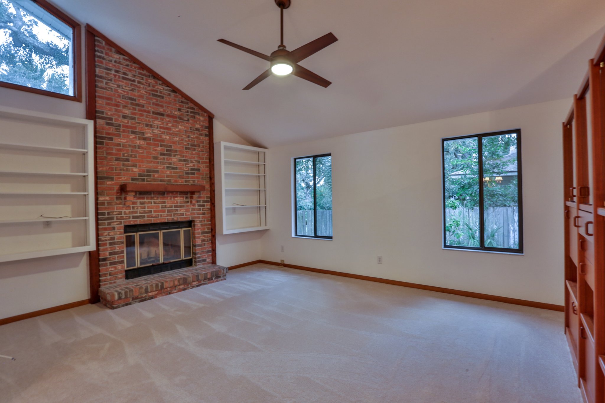 Watch the game or entertain your guests in the large living room with 20 foot vaulted ceilings and a cozy brick wood burning fireplace. The delightful 3 bedroom plan offers plenty of room for the kids, guests, extra family or have that studio or office you have always wanted.